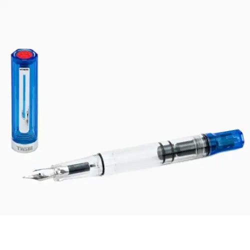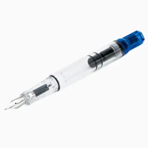 Trasparenza e colore si fondono in questa variante della celebre linea Eco. La TWSBI ECO Transparent Blue F presenta un corpo in resina trasparente che lascia ammirare il meccanismo a pistone, abbinato a un cappuccio e un pomello di un blu trasparente e luminoso. Un equilibrio perfetto tra estetica moderna e funzionalità, che permette di osservare il livello di inchiostro e il movimento del pistone in ogni momento.