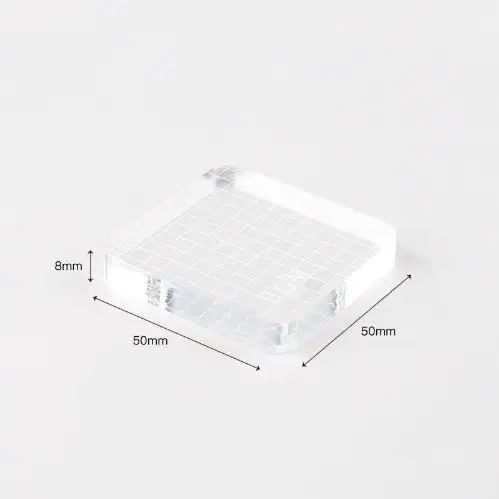Blocco acrilico trasparente di alta qualità, progettato per l’uso con timbri trasparenti in silicone. La superficie liscia e la struttura rigida garantiscono una pressione uniforme per ottenere impronte nitide e precise. Il formato compatto (S) è ideale per timbri di piccole dimensioni e per lavori di precisione.