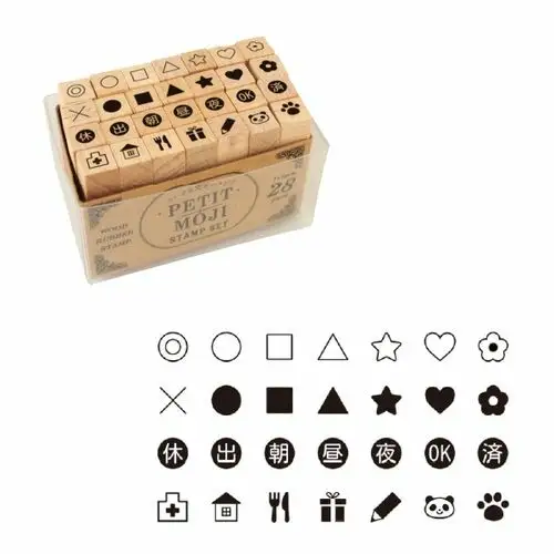 Set di timbri in miniatura con motivi di immagini e simboli (便利な記号) , ideali per decorare bullet journal, agende e quaderni con un tocco creativo e funzionale. Ogni timbro misura 7 × 7 mm, perfetto per dettagli precisi in spazi ridotti. Il set è confezionato in una pratica custodia in PET trasparente.