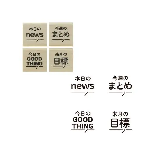 Timbro tradizionale con manico in legno, appartenente alla serie “Notebook Stamp Club” (手帳はんこ部) di Kodomo no Kao. Il motivo “Heading” (titolo) riproduce un riquadro con spazio per scrivere un titolo o un’intestazione, ideale per organizzare bullet journal, agende e quaderni con un tocco elegante e funzionale.