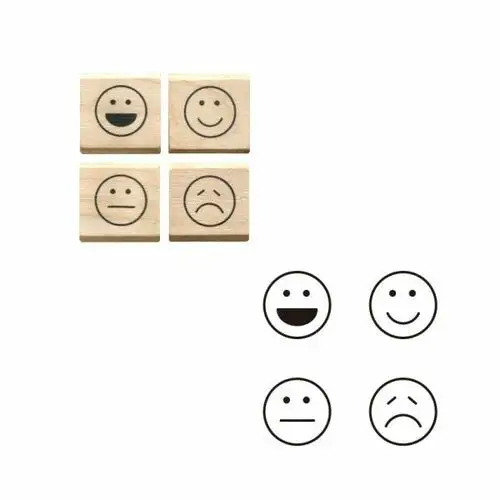 • Set da 4 timbri con manico in legno, tema “espressioni”.