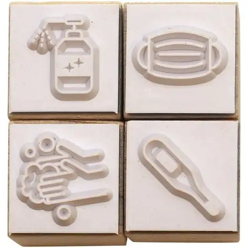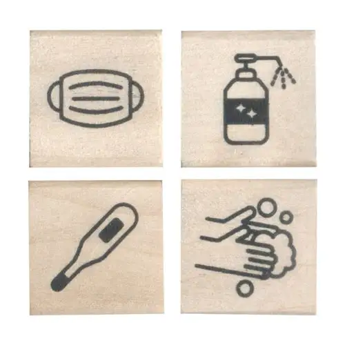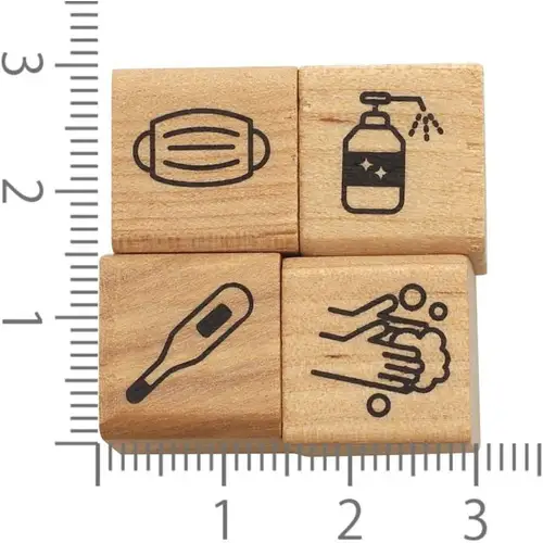 • Set da 4 timbri con manico in legno, tema “health care” (benessere e salute).
