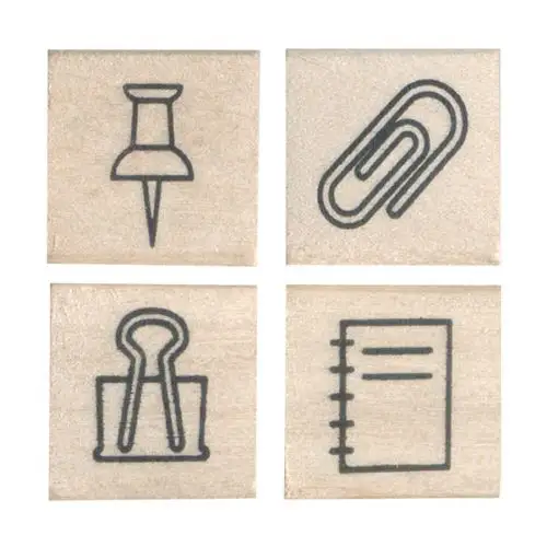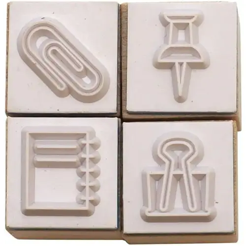 Set di 4 timbri tradizionali con manico in legno, appartenente alla serie “Notebook Stamp Club” (手帳はんこ部) di Kodomo no Kao. Il set include quattro motivi dedicati al mondo della cancelleria e degli strumenti di scrittura. Ideale per decorare bullet journal, agende e quaderni con un tocco tematico e raffinato.