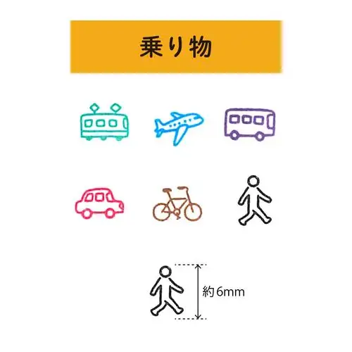 Timbro decorativo giapponese della linea Pochitto Pick!, pensato per planner, agende e bullet journal, ideale per aggiungere un tocco creativo con motivi a tema veicoli.