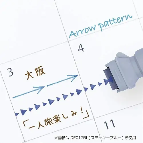 La Kutsuwa Pen Stamp Pen Smoky Blue DE017BL è un pratico strumento creativo doppio, che combina un pennarelino 0,5 mm con un timbro a rullo autoinchiostrante, perfetto per scrapbooking, journaling, cardmaking e altri progetti artistici. Grazie a questa combinazione, è possibile scrivere e timbrare con precisione usando un unico strumento compatto.