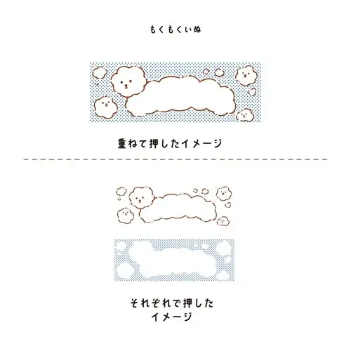 Questo simpatico timbro giapponese raffigura un cagnolino in posa da allenamento, perfetto per decorare diari, planner, biglietti e scrapbooking con un look giocoso e kawaii.