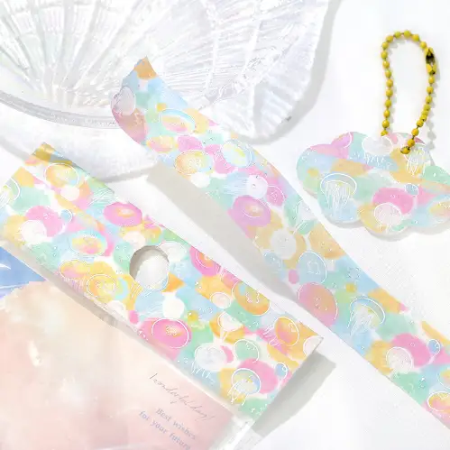 Naviga in un sogno subacqueo di grazia ipnotica. Questo nastro washi trasforma il paesaggio onirico in un balletto di meduse, dove creature eteree fluttuano in un'atmosfera magica e silenziosa. Perfetto per aggiungere un tocco di mistero marino, movimento fluido e incantata bellezza a diari, progetti creativi e decorazioni.