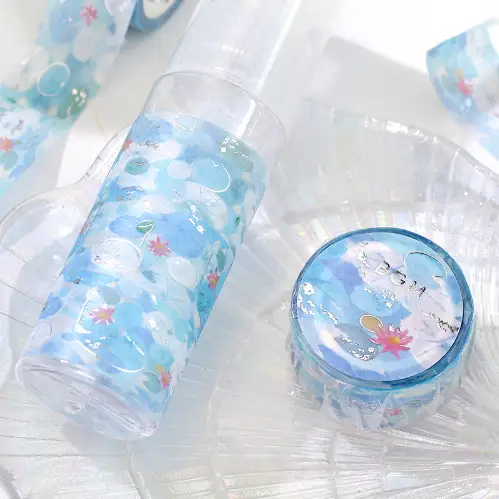Immergiti nella tranquillità di un sogno acquatico. Questo nastro washi ritrae un incantevole stagno di loto, unendo la bellezza della natura a un'atmosfera onirica e riflessiva. Perfetto per aggiungere un tocco di serenità, purezza e ispirazione poetica a diari, progetti creativi e decorazioni.