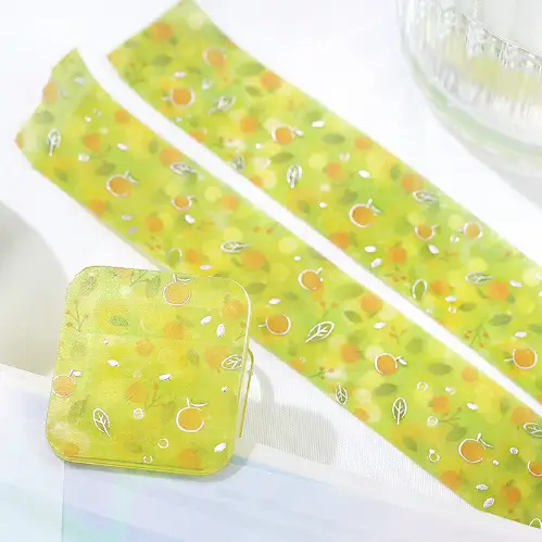 Risveglia i sensi con un sogno solare e agrumato. Questo nastro washi trasforma il paesaggio onirico in un giardino di tangerini, unendo la luminosità del frutto a un'atmosfera di calda serenità. Perfetto per infondere energia positiva, freschezza e un tocco di allegra vitalità a diari, progetti creativi e decorazioni.