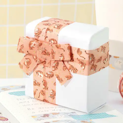 Un tributo audace e maestoso al re della giungla. Questo nastro washi "I love Tiger" cattura il fascino selvaggio e il carisma di una delle creature più iconiche, perfetto per decorare con forza, carattere e un tocco di audace eleganza ogni progetto creativo.