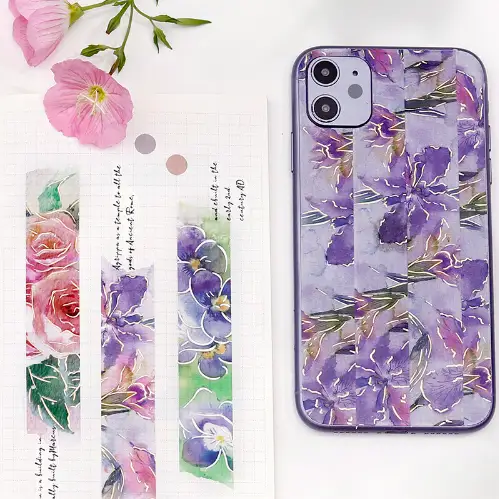Aggiungi l'eleganza pittorica di un iris dipinto ad acquerello ai tuoi progetti creativi. Questo nastro washi cattura la forma slanciata e le sfumature delicate del fiore con un effetto artistico e leggero, perfetto per donare un tocco di raffinatezza naturale e di stile pittorico a diari, decorazioni e lavori di carta.