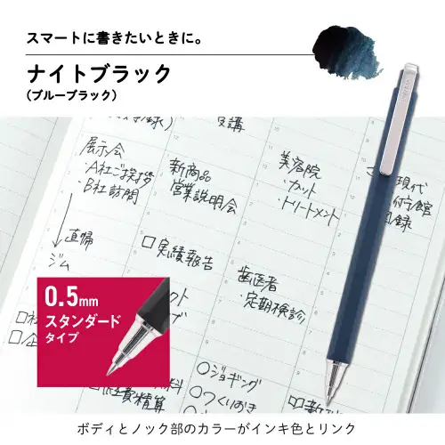 La Ball Signature iD utilizza un inchiostro Night Black, un nero scuro e deciso, progettato per garantire una scrittura uniforme, pulita e precisa. La punta da 0.5 mm consente un tratto medio-fine ben definito, ideale per note, appunti e firme professionali.