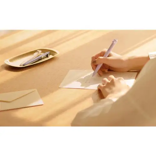 Rendi ogni momento di scrittura un'esperienza confortevole e rilassata. La serie Zento è stata sviluppata per offrire una scrittura "stress-free", grazie a un inchiostro di nuova concezione che riduce l'attrito e minimizza sbavature e aloni. Il modello Standard si distingue per il design minimalista e la lunga impugnatura in gomma che garantisce stabilità e comfort, con la sua elegante finitura "Ivory".
