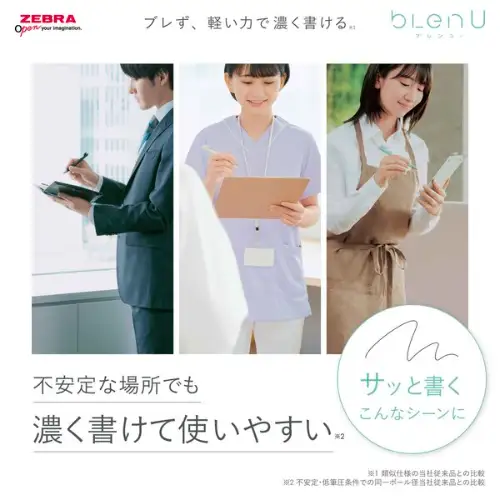 La scrittura senza stress, evoluta. La serie bLen, nata dalla collaborazione con lo studio di design Nendo, introduce il modello "U" che porta l'esperienza di scrittura a un nuovo livello. Il rivoluzionario "bLen System" controlla le vibrazioni della punta, mentre il nuovo inchiostro S a base d'olio garantisce un tratto intenso e scuro con una pressione minima. Il risultato è una scrittura stabile, fluida e confortevole anche in condizioni precarie.