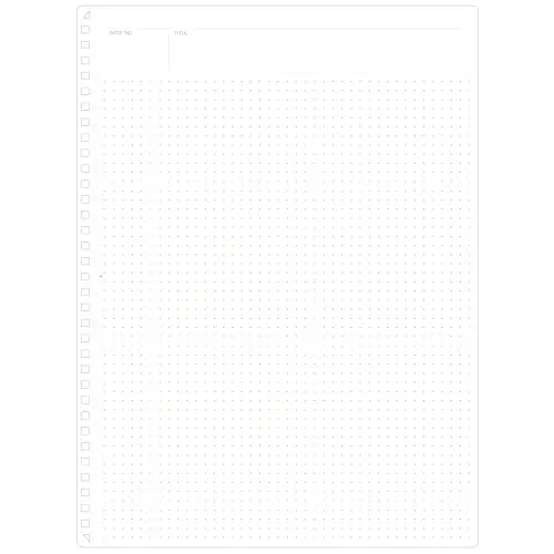 • Griglia a punti da 5 mm: stampata in tenue grigio, guida la scrittura e il disegno senza essere invasiva, perfetta per organizzare idee con testo e diagrammi.