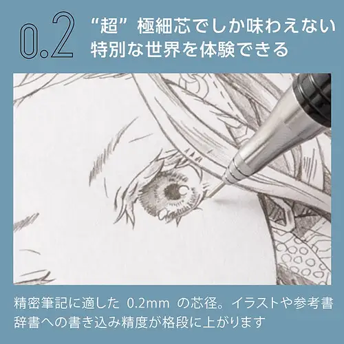 Scrivi senza pensare alla mina, con un’eleganza senza tempo. Questa matita meccanica è dotata del rivoluzionario sistema Orenz: il tubo guida scorre insieme alla mina, permettendo di scrivere senza doverla estrarre. Il risultato è una scrittura continua, senza interruzioni e con una protezione totale dalla rottura. Il fusto bianco e l’impugnatura metallica nera a basso baricentro garantiscono stabilità e comfort anche nelle sessioni più lunghe.