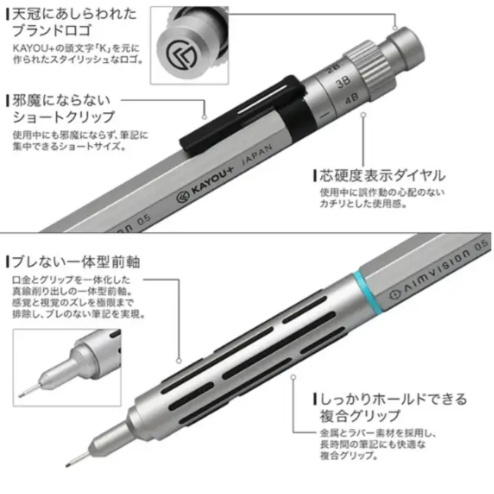 KAYOU+ – Aimvision Mechanical Pencil 0.5 mm, Mineral Silver