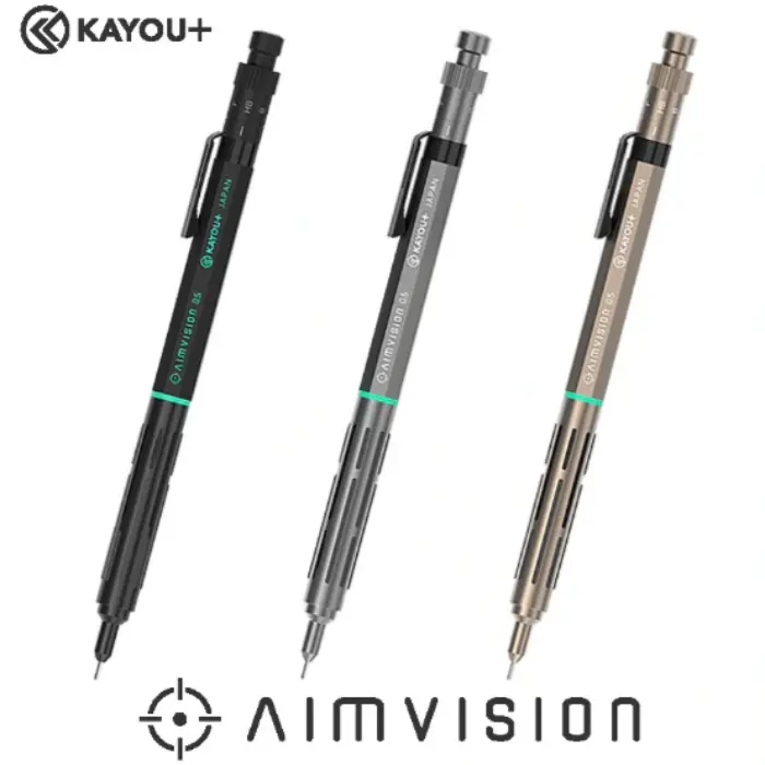 Una matita meccanica che unisce la precisione del disegno tecnico al piacere della scrittura quotidiana. L'Aimvision è stata progettata per offrire un'esperienza di scrittura estremamente stabile e senza vibrazioni, grazie a un corpo anteriore in ottone ricavato da un unico blocco.