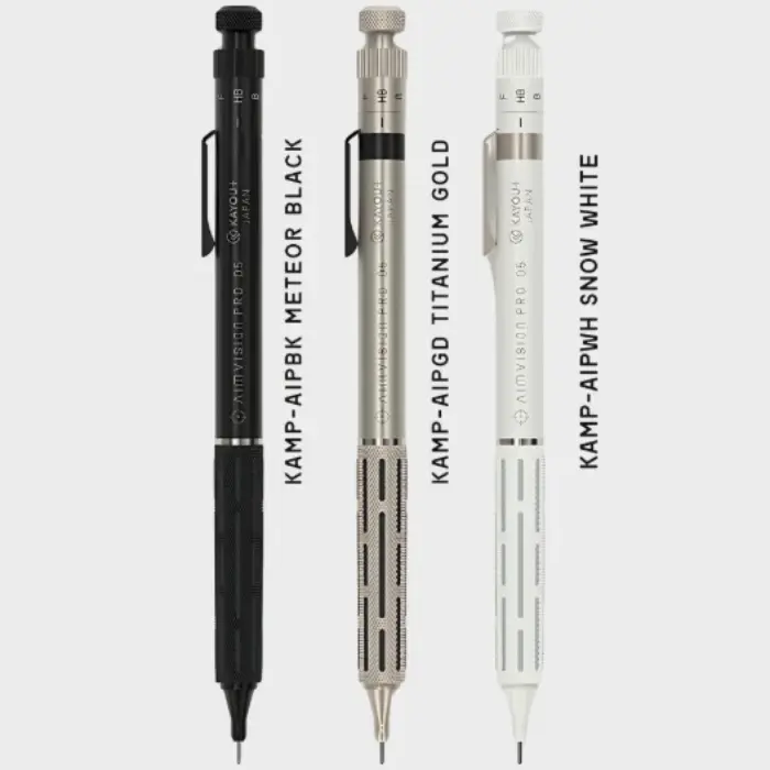 La matita meccanica che unisce rigidità e precisione assoluta per il disegno tecnico e la scrittura quotidiana. L’Aimvision Pro è il modello di punta della linea KAYOU+, con un corpo interamente in ottone lavorato al CNC che elimina vibrazioni e flessioni, offrendo una scrittura stabile e controllata come un’estensione naturale della mano. La finitura "Meteor Black" (メテオブラック) regala un look scuro e minimalista, perfetto per ambienti professionali e creativi.