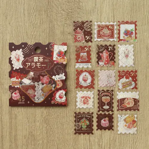 Le Flake Seal BGM “Coffee à la Mode – Post Office Red” offrono un tocco raffinato e giocoso ai tuoi progetti creativi. Questo set comprende 15 design diversi, con 3 copie ciascuno, impreziositi da dettagli in foil rosso che donano brillantezza e stile elegante.