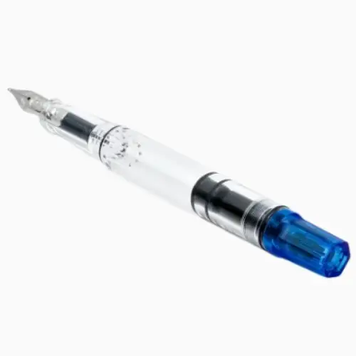 Trasparenza e colore si fondono in questa variante della celebre linea Eco. La TWSBI ECO Transparent Blue F presenta un corpo in resina trasparente che lascia ammirare il meccanismo a pistone, abbinato a un cappuccio e un pomello di un blu trasparente e luminoso. Un equilibrio perfetto tra estetica moderna e funzionalità, che permette di osservare il livello di inchiostro e il movimento del pistone in ogni momento.