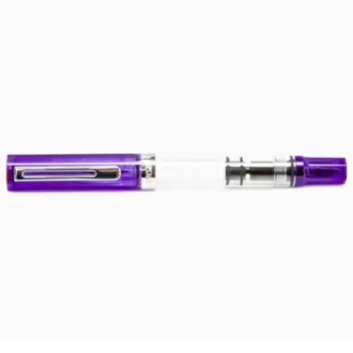Trasparenza e colore si fondono in questa variante della celebre linea Eco. La TWSBI ECO Transparent Violet M presenta un corpo in resina trasparente che lascia ammirare il meccanismo a pistone, abbinato a un cappuccio e un pomello di un viola trasparente e luminoso. Un equilibrio perfetto tra estetica moderna e funzionalità, che permette di osservare il livello di inchiostro e il movimento del pistone in ogni momento.