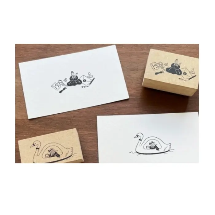 Timbro in gomma naturale su manico in legno che raffigura la mascotte di Stamp Marche, Marl-chan, rimpicciolita e circondata dai suoi oggetti di cancelleria preferiti. Il tema “Stationery Country” (文具王国) evoca la gioia di immergersi in un mondo fatto di carta, penne, matite e altri strumenti creativi, perfetto per decorare planner, bullet journal, agende e quaderni con un tocco giocoso e originale.