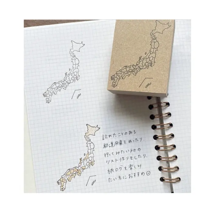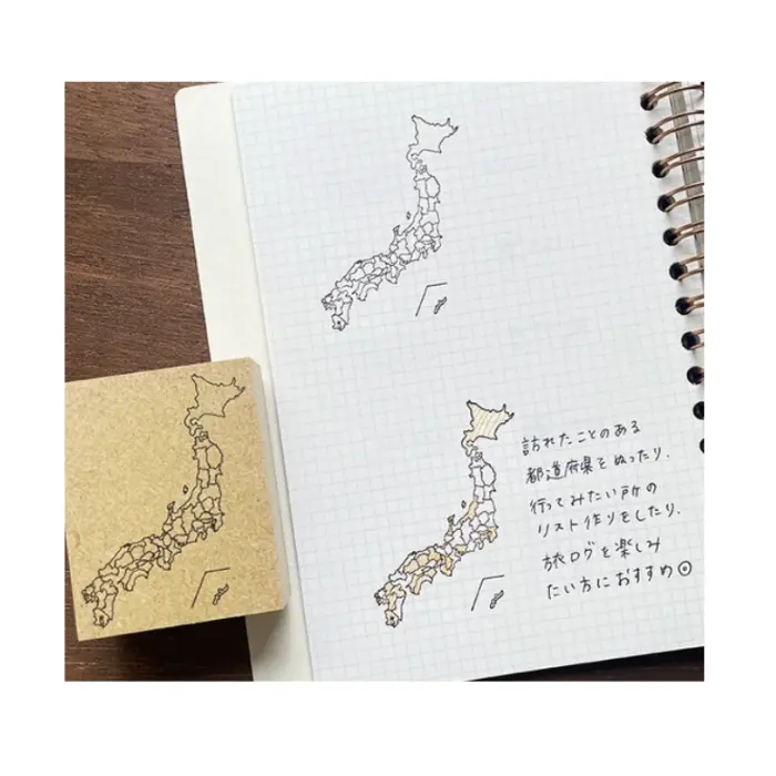 Timbro in gomma naturale su manico in legno che riproduce la sagoma del Giappone con i confini delle prefetture. Ideale per colorare le regioni visitate, pianificare i prossimi viaggi e tenere un diario di bordo dei propri spostamenti. Adatto anche per lo studio della geografia giapponese e per la preparazione di esami.