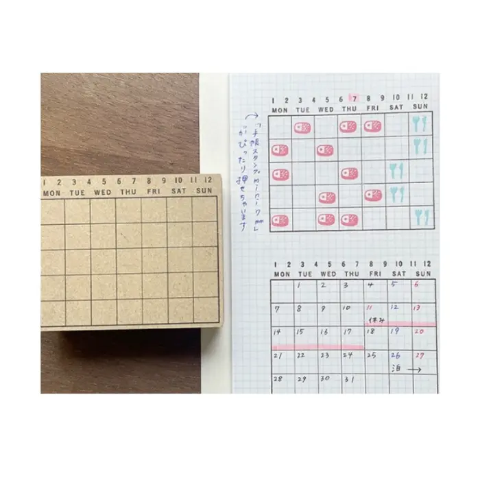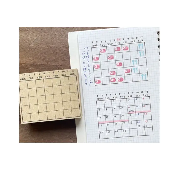 Timbro in gomma su manico in legno che permette di creare un calendario mensile con una semplice timbrata, riutilizzabile tutto l'anno scrivendo le date a mano. Ogni casella misura 9 × 9 mm, dimensione studiata per adattarsi perfettamente ai quaderni a quadretti e per essere compatibile con altri timbri mini della linea Stamp Marche. Ideale per pianificare appuntamenti, tracciare abitudini, organizzare i pasti e gestire progetti in bullet journal, planner e quaderni.